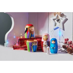 This exquisite 4-in-1 Festive Nativity Figurine set showcases a beautifully hand-painted, Russian doll style design featuring the Three Kings, Joseph, Mary, and baby Jesus. Crafted from wood, each piece nests perfectly within the largest figurine, combining tradition with elegant storage. Measuring up to 13.7 cm in height with a 6.5 cm diameter, this charming ornament is ideal for annual display, adding a timeless festive touch to any Christmas setting. It comes packaged in a box, making it a thoughtful gift or a treasured addition to your holiday decor.