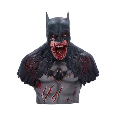Celebrate the darker side of Gotham’s hero with the Batman DCeased Bust by Nemesis Now. Standing 29cm tall, this officially licensed collectible captures Batman in a haunting moment—his mouth bloodied, eyes menacing, and tears streaking his body, inspired by the DCeased comic series. Expertly hand-painted and cast in high-quality resin, it’s a striking piece offering both a chilling aesthetic and meticulous craftsmanship, perfect for discerning fans of horror or the DC universe.