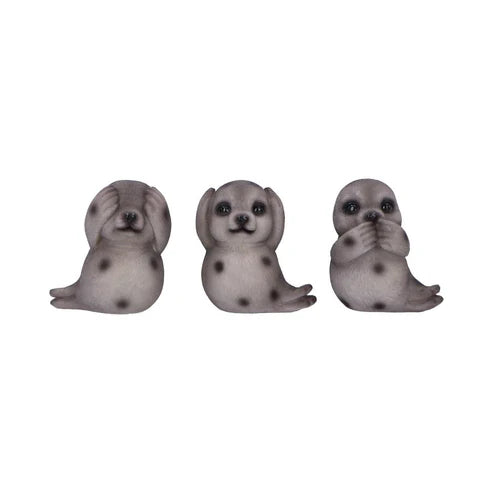 The Three Wise Seals set features three charming gray spotted seals, each posed to represent 'see no evil, hear no evil, speak no evil'. Crafted from durable resin with meticulous attention to detail, these 7.5cm figurines showcase individual character and intricate craftsmanship. Ideal for animal lovers and collectors, this decorative set adds a thoughtful, meaningful touch to any space or gift occasion.