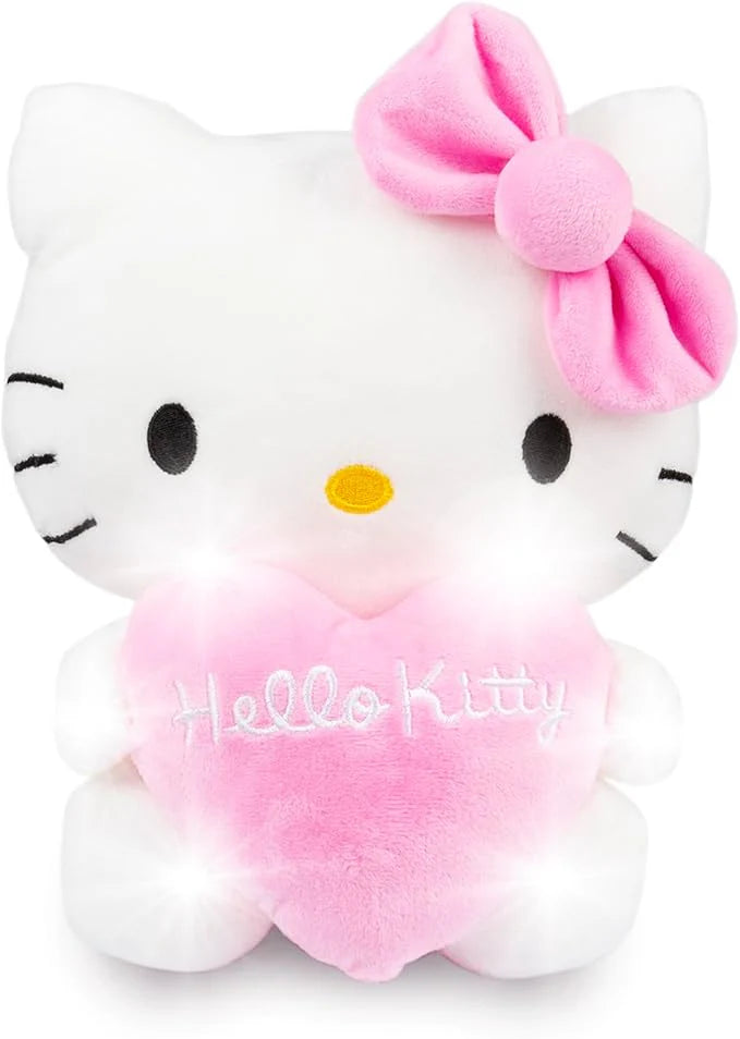 This super-soft plush features a pretty pink bow and a love heart with Hello Kitty branding. Give your new pal a squeeze and she will light up – perfect for bedtime cuddles!